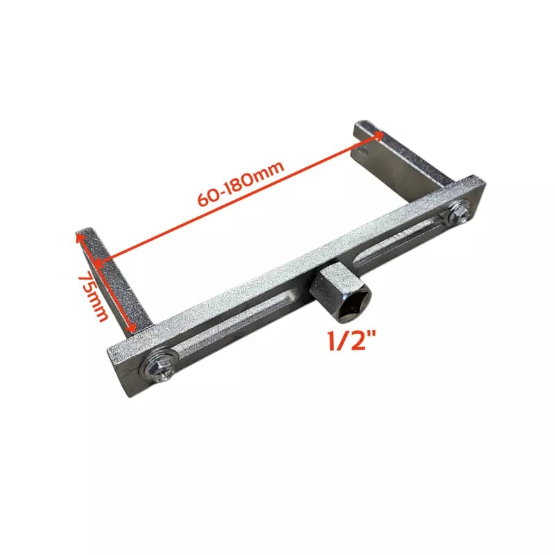 Ease of Use: The width is adjusted using bolts or a wing nut and can be operated with a standard 1/2-inch drive ratchet and extension.